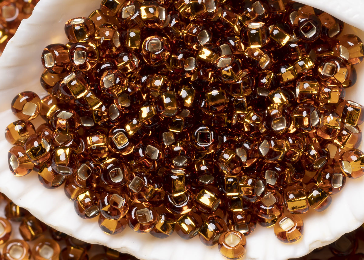 Бисер Чехия круглый 08/0 50 г 17090h прозрачный светло-коричневый с серебряным прокрасом квадратное отверстие