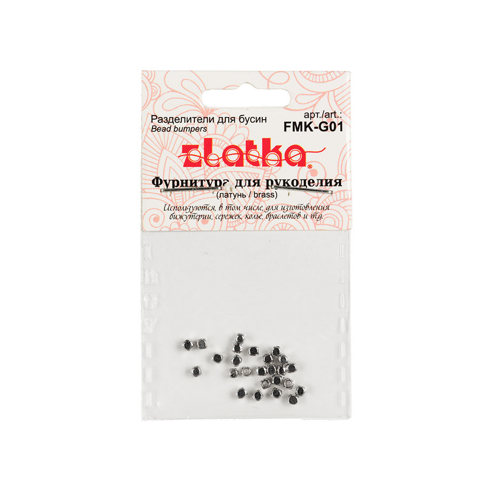 Разделители для бусин " Zlatka" FMK- G01 Рондели - небольшие декоративные бусины, используются для разделения бусин в украшении например, один вид от другого или в качестве самостоятельного декоративного элемента. Использование качественной фурнитуры играет очень важную роль при изготовлении бижутерии. От правильного выбора подвески, коннектора, замка или любой другой связующей части зависит целостность готового изделия. Диаметр: 2 мм. Внутренний диаметр: 1 ммСообщить о неточности в описании
