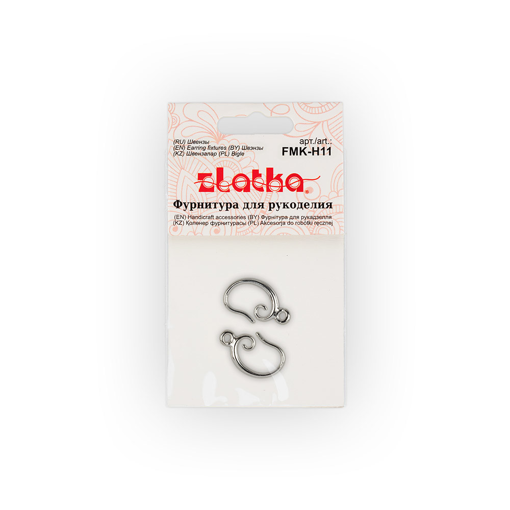 Швензы " Zlatka" FMK- H11 - это та часть сережек, которая непосредственно вставляется в дырочку на мочке уха и является держателем декоративной части сережек. Иногда их также называют замочками, застежками для серег. Швензы- крючки - самый распространенный вид швенз. Представляют собой удлиненную петлю, которая удобно закрепляется в мочке уха. Идеально подходит для украшений с камнями и подвесками. Для повышения надежности крепления можно дополнительно использовать силиконовые заглушки арт. MFZ- 02. Использование качественной фурнитуры играет очень важную роль при изготовлении бижутерии. От правильного выбора подвески, коннектора, замка или любой другой связующей части зависит целостность готового изделия. Размер: 11 х 15 мм. Состав: латунь. Сообщить о неточности в описании
